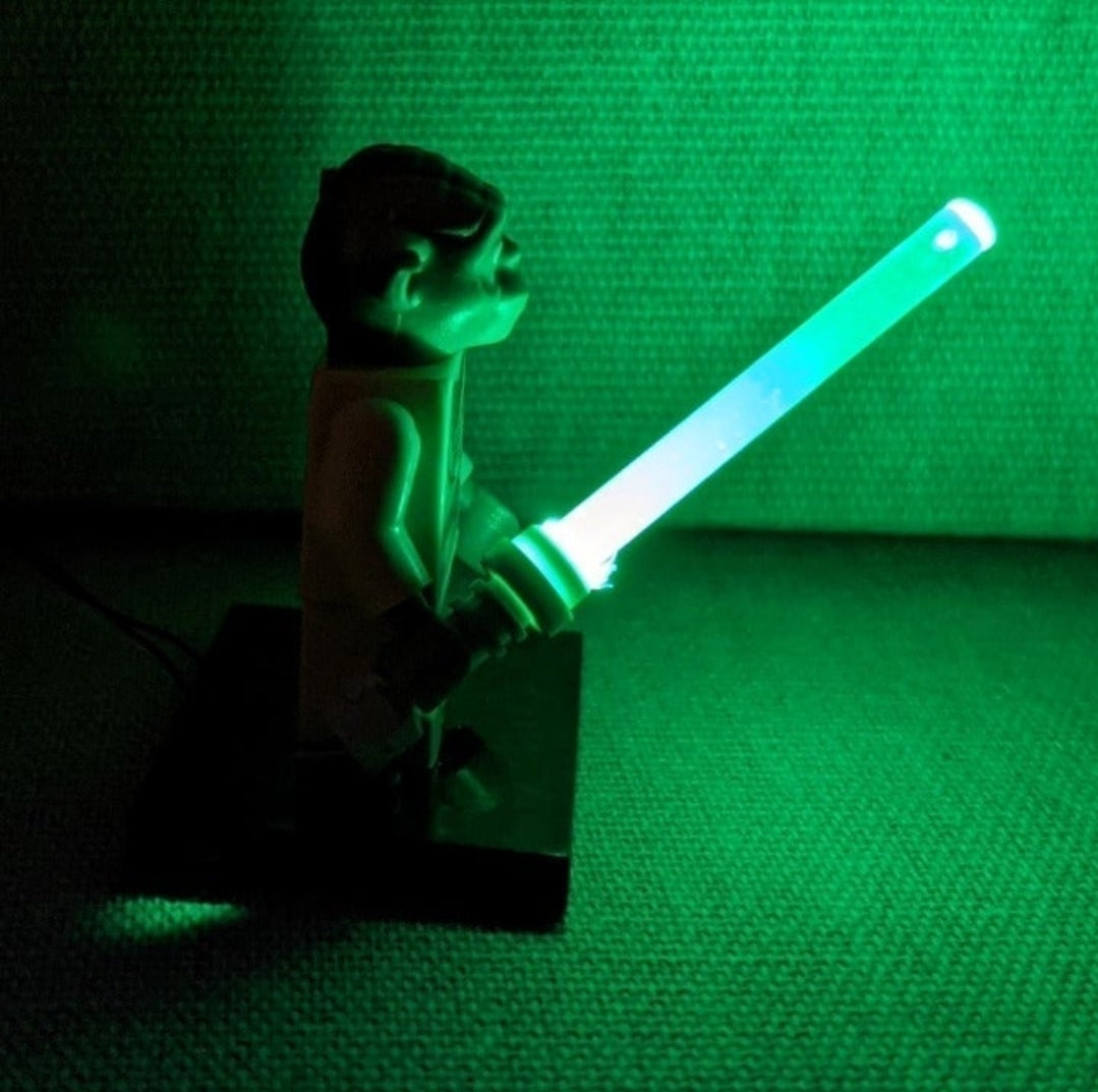 Blade lights up using USB which you can plug into your; phone, laptop, or other devices.